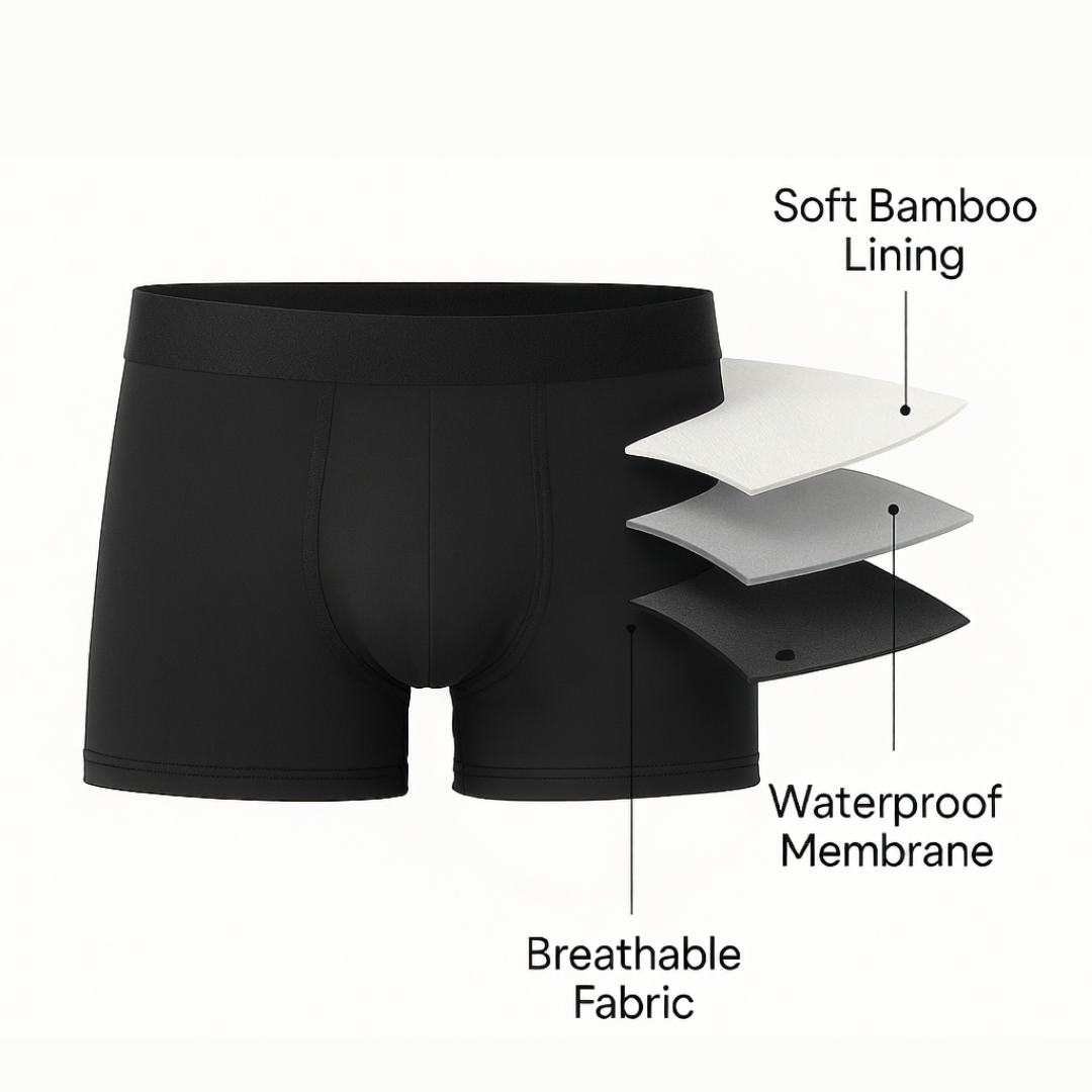 We’re young and active, and sometimes leaks happen, but everything out there felt old and medical. So we built boxers that look and feel normal, with stealth protection built in. No bulk. No noise. Just confidence.